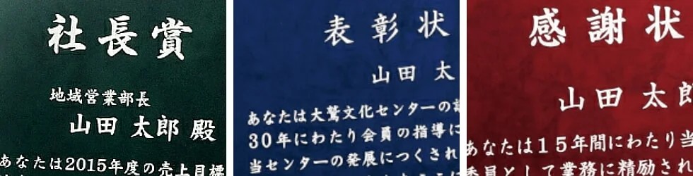 彫刻スペースが狭いタイプですので、文章は入れずに、ロゴマーク、タイトル、受賞者、日付等でシンプルにまとめた方がバランス良く収まります。